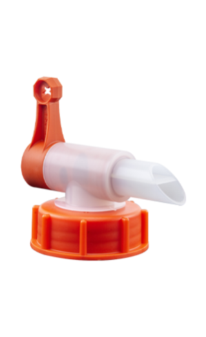 Dispenser Cap with foam liner. It is used for screw-sealing containers made of High-Density Polyethylene (HDPE) with a crown diameter of 53 mm. Ideal for products that require an integrated dosing valve.