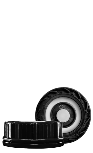 Tapa de 53 mm con liner espumado y válvula de ventilación, fabricada con Polietileno de Alta Densidad (PEAD).